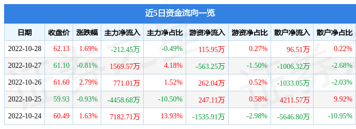资金流向数据方面,10月28日主力资金净流出212.45万元,游资资金净流入115.95万元,散户资金净流入96.51万元。