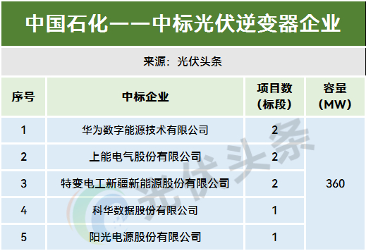 5月19日,中国石化物资装备部(国际事业公司)2025年度逆变器集采项目公示中标结构。项目分为三个包件,华为、上能、特变、科华、阳光电源最终中标。