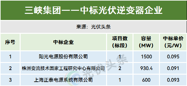 2月25日,三峡集团2024年光伏逆变器框架集中采购(第二批次)确定中标人,阳光电源、中车时代电气(株洲变流)、正泰电源中标。